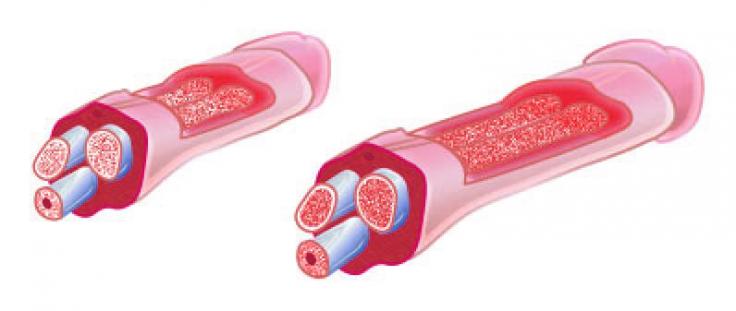 Die Schwellkörper des Penis vor der Anwendung (links) und nach 21 Tagen (rechts):